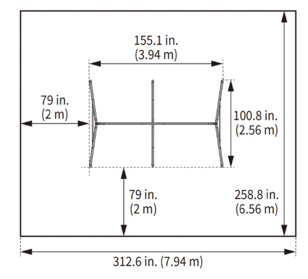 - Safe Play Zone: 7.94m x 6.56m